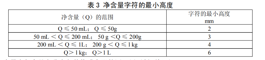 4.1.5.4 凈含量字符的最小高度應(yīng)符合表 3 的規(guī)定。com